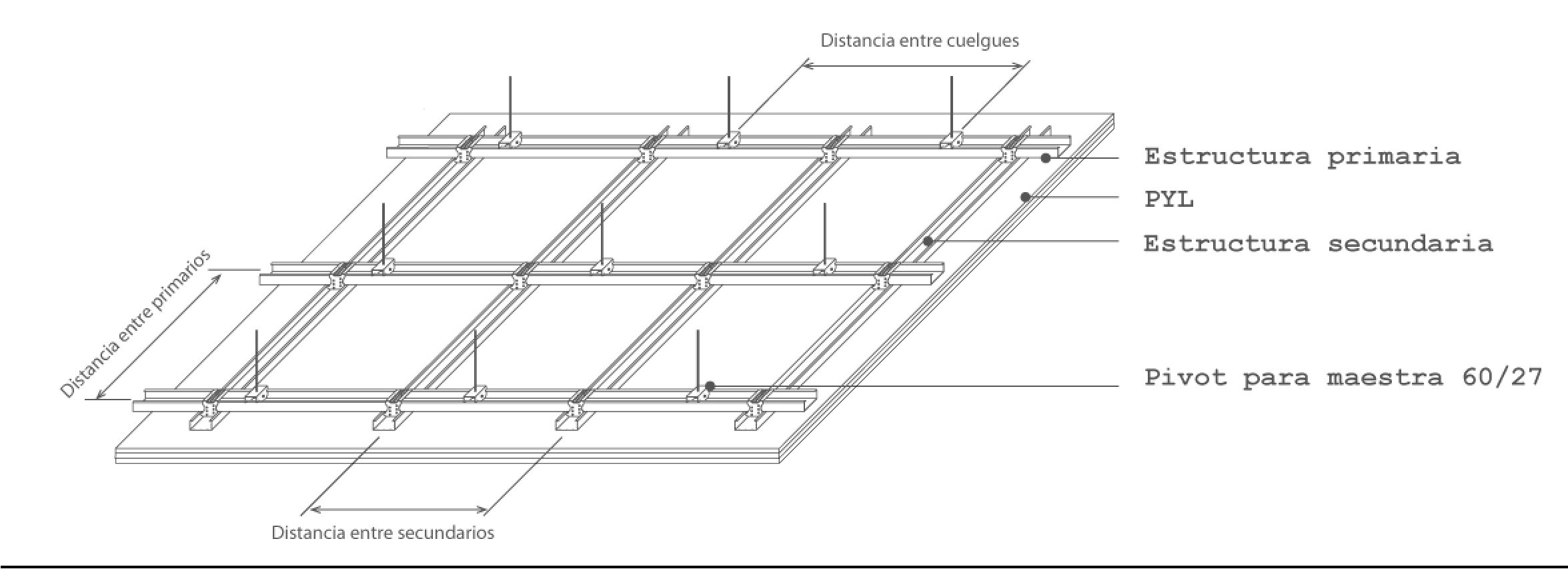 Techo continuo formado por tres placas de yeso laminado del tipo Cortafuegos de la marca ISOPLAC, de 15 mm de espesor cada una; atornilladas a una estructura de perfiles, Maestra F47 (primarios y secundarios), y suspendido bajo varilla roscada M-6 y pivot F47. Incluye tornillería, pastas, cinta para juntas...etc. Tanto la perfilería como los accesorios son de la marca ISOPRACTIC. Totalmente terminado y listo para pintar.