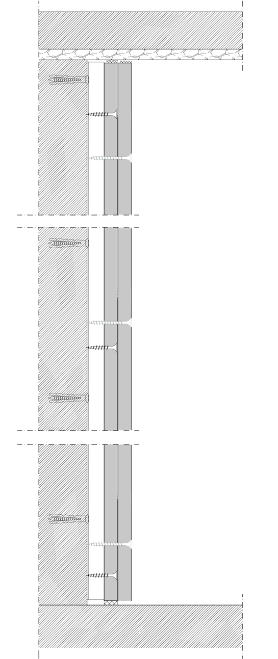 Trasdosado semidirecto formado por dos placas de yeso laminado del tipo Standard de la marca ISOPLAC de 15 mm de espesor cada una, atornilladas a una estructura metálica de acero galvanizado de maestras omega de la marca ISOPRACTIC, fijadas al muro portante cada 400 mm. Incluso parte proporcional de pasta y cinta para juntas, tornillos, fijaciones...Todos los accesorios son de la marca ISOPRACTIC. Totalmente terminado y listo para pintar.